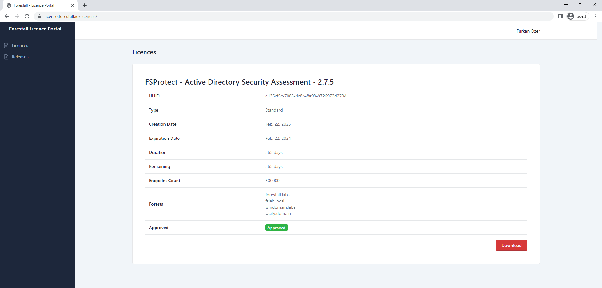 2. Download the license file from [**Licenses** ](https://license.forestall.io/licences/)page.