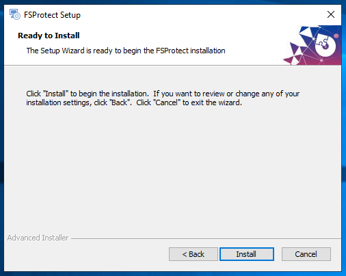 10. Click **Install** button to start FSProtect.