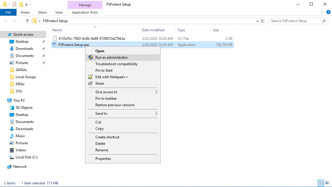 4. Run installation package with **Administrator privileges** in FSProtect deployment server.